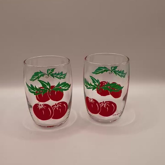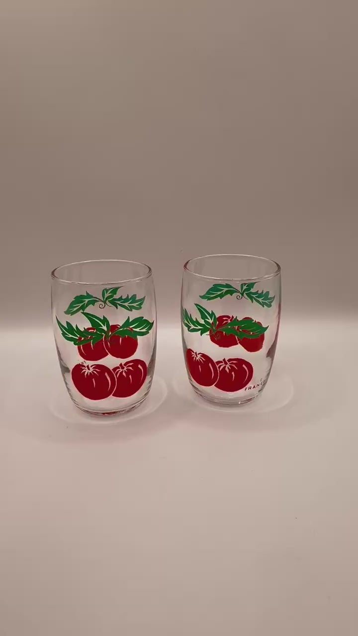 Mid century modern pair of vintage tomato juice glasses made in France