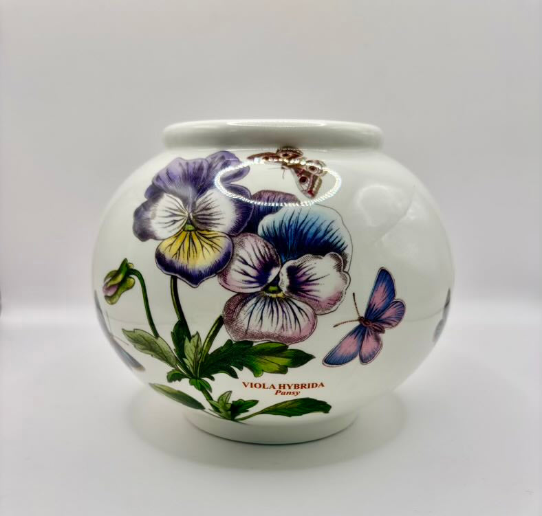 This is a beautiful Portmeirion Botanic Garden Small Globe Vase-Viola Hybrida Pansy & Butterflies.