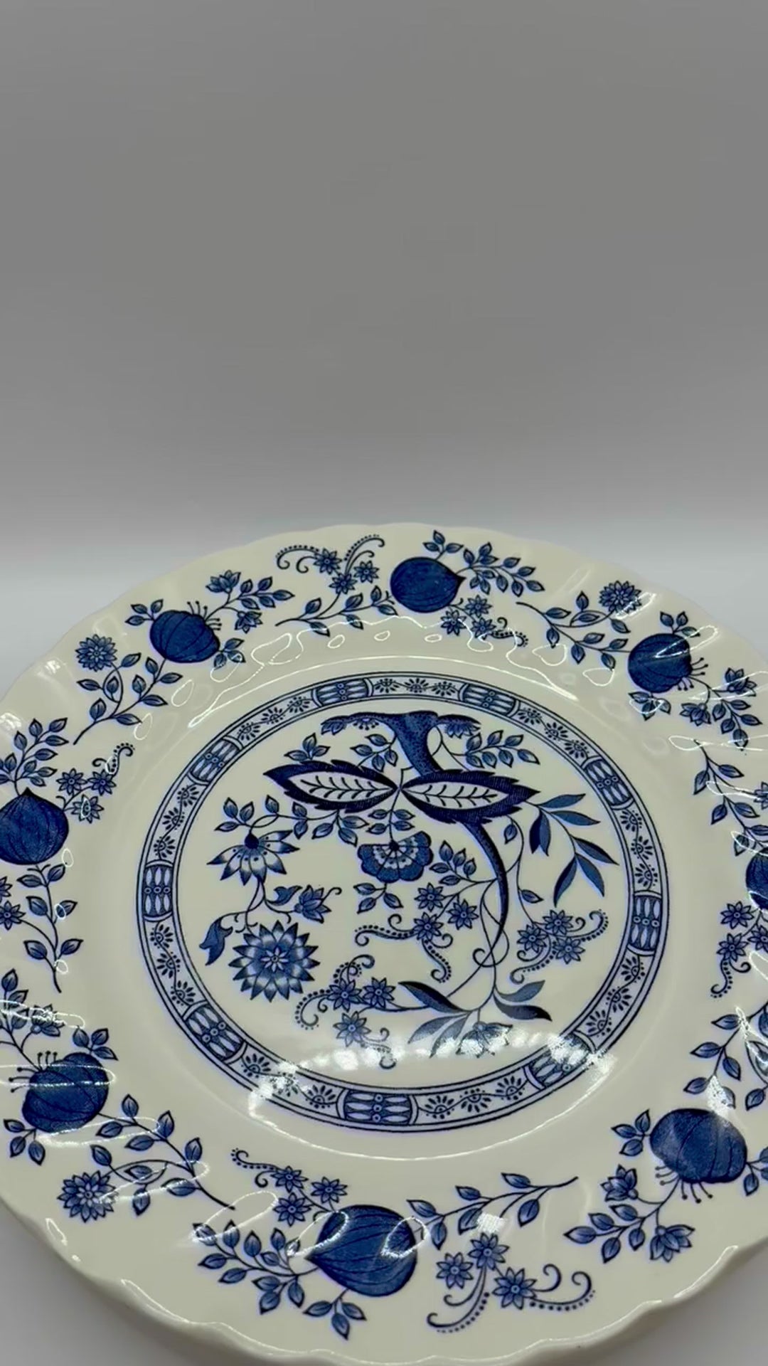 This beautiful plate was designed by J & G Meakin. Later, Wedgwood acquired the pottery and continued producing the pattern under the name "Blue Heritage".