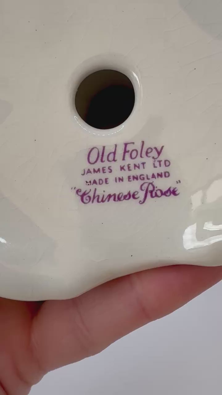 Vintage James Kent Old Foley Candlesticks Pair Chinese Rose