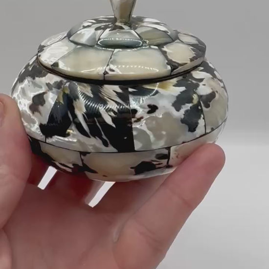 Vintage Mother Of Pearl Abalone Round Trinket Box Black And White