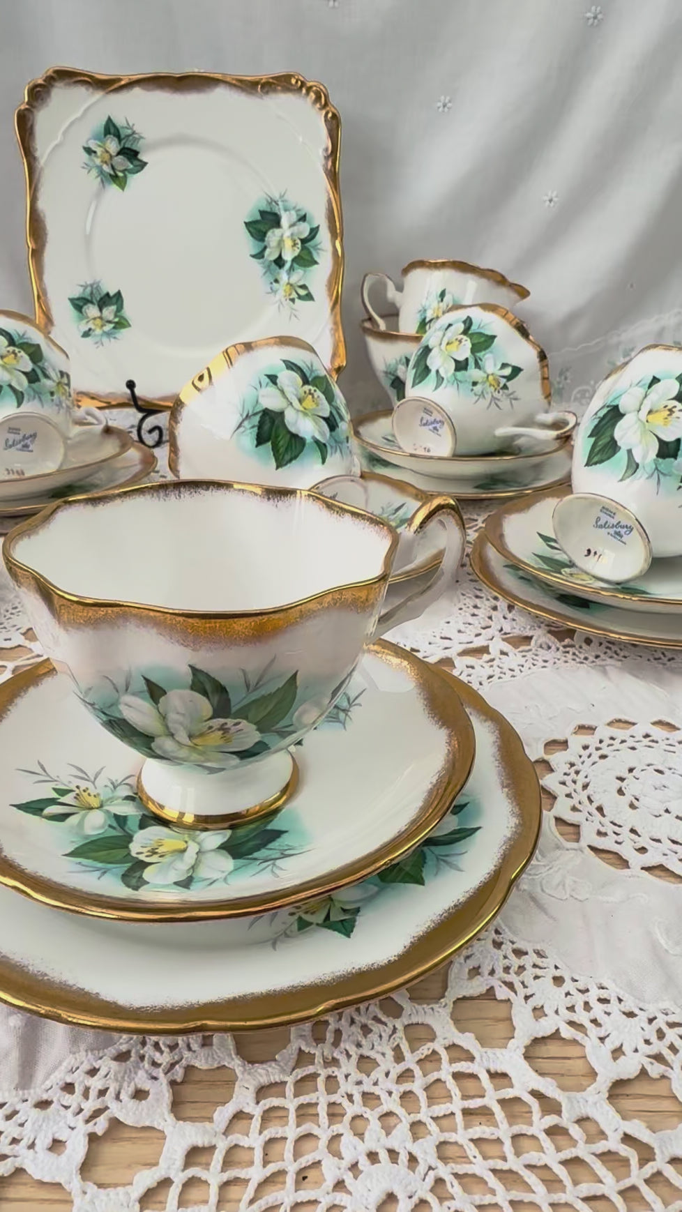 Beautiful vintage tea and coffee trio set by Salisbury China Co Ltd, made in Longton, Staffordshire, England. Known for producing high-quality fine bone china between 1946 and 1961, Salisbury China is highly collectible and admired for its elegant floral designs.