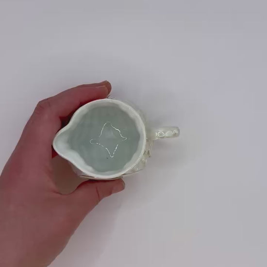 In good vintage condition with no chips, cracks, or repairs, this iridescent shell creamer adds a touch of classic elegance to any display or tea set.