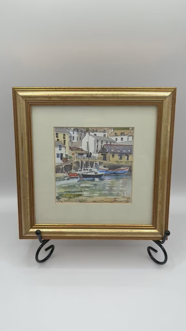 Virginia Walton’s watercolour paints bring a fresh quality to any subject, whether it’s landscapes, boats, or city scenes. Her colours are perfect for capturing the detail and movement of a boat with buildings in the background.