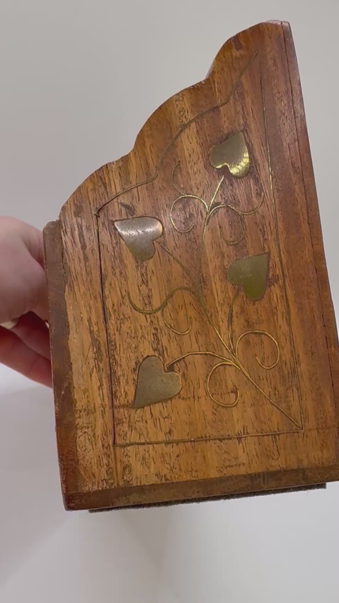 Vintage Wooden Letter Rack Brass Inlay Leaf Letter Stationery Paper